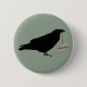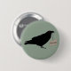 Button-Back-Button mit meinem originalen digital erstellten Bild eines Raben oder Krähen. Der Rabe ist schwarz mit blutroten Augen. Er hält eine Kette in seinem Mund, von der eine alte Notiz hängt, die "Nevermore" liest. Er steht vor einem grau-grünen Hintergrund mit feinen, tonnen und gewellten Linien. Ein sehr literarischer Weg, um Ihren Flair zu Halloween oder zu jeder anderen Zeit zu tragen.