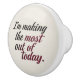 Dieser Keramik-Knopf ist wunderschön mit dem motivierend Satz "Ich mache das Beste aus heute" in fett gedruckter, kursiver Schrift gestaltet, sodass er sowohl funktional als auch inspirierend ist. Die glatte, verglaste Keramik sorgt für Langlebigkeit, während das lebhafte Design den Schränken, Umkleidern und Schubladen eine Touch Eleganz verleiht. Perfekt als dekorativer Türzieher, kombiniert dieser Drehknopf Stil mit Positivität und erinnert jeden Tag daran, mit dem Zweck zu leben. Einfach zu installieren, kommt es mit robuster Metallhardware für den langlebigen Einsatz. Ideal für Zuhause-Dekoration, Möbelherstellung, Heimwerkerarbeiten, boho Stil Interieur und Geschenkideen, ist dieser Keramik-Knopf sowohl praktisch als auch aufregend.