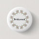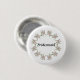 Ein Kreis rosa Blume umgibt das Wort überhängend auf diesem Knopf.
