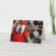 Die Feder-versierte Gruß-Karten des Scharlachrots mit Begleiter-Papageien-Haltung