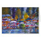 Schönes Watermedia/Aquarell des knorrige Kiefern-Erholungsort-Jachthafens. Expressionistische Farben durch T. Fowler-Bailey