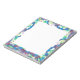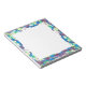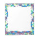 Dieses praktische Notizblock ist von farbenfrohen Flecken und Punkten umgeben.