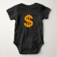 Baby Jumpsuit mit den Worten "Know My Worth" auf der Vorderseite in afrikanischen Farben, oben mit goldener Krone. Auf der Rückseite steht ein goldenes Dollarzeichen.