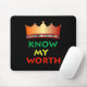 Mousepad mit den Worten "Know My Worth" in afrikanischen Farben mit einer goldenen Krone oben.