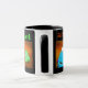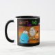 Tasse, die viele gespenstischen Monster, eine Mama, ein beängstigender Kürbis kennzeichnet. Tasse hat schwarzen und orange Hintergrund mit bunten Monstern und Text.