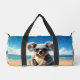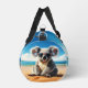 Koala sitzt auf einem Sandstrand mit Sonnenbrille. Diese Furry koala ist ein gebürtiger Australier, sie sind leicht erkennbar durch ihren stout, tailler Körper und großen Kopf mit runden, flauschigen Ohren und große, löffelförmige Nase.