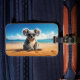 Koala sitzt auf einem Sandstrand mit Sonnenbrille. Diese Furry koala ist ein gebürtiger Australier, sie sind leicht erkennbar durch ihren stout, tailler Körper und großen Kopf mit runden, flauschigen Ohren und große, löffelförmige Nase.