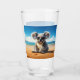 Koala sitzt auf einem Sandstrand mit Sonnenbrille. Diese Furry koala ist ein gebürtiger Australier, sie sind leicht erkennbar durch ihren stout, tailler Körper und großen Kopf mit runden, flauschigen Ohren und große, löffelförmige Nase.