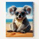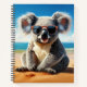 Koala sitzt auf einem Sandstrand mit Sonnenbrille. Diese Furry koala ist ein gebürtiger Australier, sie sind leicht erkennbar durch ihren stout, tailler Körper und großen Kopf mit runden, flauschigen Ohren und große, löffelförmige Nase.