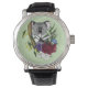 Uhr, Klassische Damenuhr mit schwarzen Lederarmband