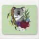 Ein niedlicher Koalabär auf einer Baumgrenze mit Blume und Eukalyptus-Blätter im grünen Hintergrund