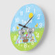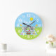 Diese niedliche und skurrile Uhr kann mit einem Namen personalisiert werden. Es ist mit bezaubernden Koalabären ausgestattet, die ein Picknick auf einem blauen Gingham-Tuch mit Leckereien wie Honig, Wassermelone, Erdbeermarmelade, Limonade und Kuchen haben. Im Hintergrund ist ein leuchtend blauer Himmel und Sonne, Schmetterlinge und Gänseblümchen.