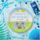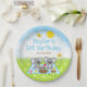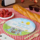 Dieser niedliche und skurrile Teller besticht durch die zauberhaften Koalabären, die auf einem blauen Gingham-Tuch picknicken, mit Leckereien wie Honig, Wassermelone, Erdbeermarmelade, Limonade und Kuchen. Im Hintergrund ist ein leuchtend blauer Himmel und Sonne, Schmetterlinge und Gänseblümchen. Der Text kombiniert dekorative und serf Schriftart für ein stilvolles und modernes Aussehen. Das ist ideal für eine Geburtstagsfeier im Frühling oder Sommer.