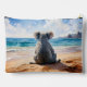Koala sitzt auf einem Sandstrand und beobachtet den Ozean mit Möwen, die in der Ferne fliegen Diese furry koala ist ein gebürtiger Australier sie sind leicht erkennbar durch ihren stout, tailler Körper und großen Kopf mit runden, flauschigen Ohren und große, löffelförmige Nase.