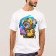 Koala-Tiefsee-Taucher-Cartoon-Art-Shirt. Vintage-Taucheranzug und eine leuchtende Qualle auf einem hellen Cyan-Hintergrund. Whimsischer Comic-Stil für Abenteurer.