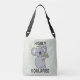 Hoch koalafied - hoch qualifiziert. Eine niedliche Grau Koala Cartoon Grafik zeichnend mit einem Koala Bären Pun. Schönes und liebliches Wildtierdesign. Australisches Wildbaby-Tier auf einem Eukalyptus-Baum mit Blätter aus Gummi