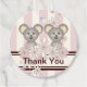 Das Produktdesign umfasst Baby twin koalas, umgeben von Blume. Der bezaubernde Cartoon mit rosa Streifen macht niedliche und einzigartige Gefälligkeitsmarken mit personalisiertem Text für die Dusche von zwei Mädchen, Geburtstag und mehr!