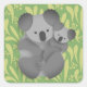 Koala und Joey vor einem Hintergrund von Eukalyptus-Blätter Aufkleber.