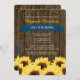 EINE SONNENBLUME-THEMED BRAUTPARTY-EINLADUNG MIT EINEM LAND-CHARME UND EINEM RUSTIKALEN GEFÜHL. EIN HÖLZERNER KORN-BRETTERZAUN ODER EIN FASS-BLICK-ENTWURF UND EINE NAGEL-KOPF-ORDNUNG. SCHREIBEN SIE, WAS AUCH IMMER SIE AUF DEM KOBALT-BLAU-DRUCKband-FAHNEN-BLICK-ENTWURF AUF DER FRONT WOLLEN UND RÜCKSEITE VON DIESEM EINLADEN. FÜGEN SIE DIE INITIALEN DES BRAUT-UND BRÄUTIGAM-INNERES DER GESCHNITZTE HERZ-ENTWURF AUF DER RÜCKSEITE DER EINLADUNG HINZU. EIN BLUMENSTRAUSS DER GOLDENEN GELBEN SONNENBLUMEN HABEN EINEN VINTAGEN UND PAINTERLY BLICK. VERVOLLKOMMNEN SIE FÜR PAARE POLTERABEND ODER BRAUTPARTY MIT EINEM BARNYARD-SCHEUNEN-BAUERNHOF-ODER BAUERNHAUS-THEMA. ENTWERFEN SIE © CHRISSY H. STUDIOS, LLC. ALLE RECHTE VORBEHALTEN.