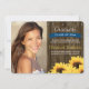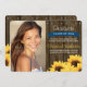 Fügen Sie Ihren Lieblings-Senior-Klassenbild zu diesen Sonnenblumenankündigungen Abschluss Foto und Einladungen mit einem Land Vintagen Charme. Die goldgelben Sonnenblumen schmücken den neuen Graf mit einem braunen Holzzaun mit Nagelkopfschnitt, der an eine alte Scheune erinnert, einem Bauernhaus oder einem Fass. Fügen Sie das Jahr Ihrer abgeschlossen Klasse in das kobaltblaue Bannerdesign ein. Abschluss Zeremonie und feierliches Party Details können auf der Rückseite dieser Einladung hinzugefügt werden. Design © Chrissy H. Studios, LLC. Alle Rechte vorbehalten.