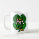 Kobold stehend vor einem Klee mit 4 Blättern.
