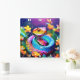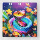 Kobraschlange mit leuchtend türkisfarbenem Rosa un Quadratische Wanduhr