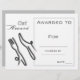 Eine Auszeichnung mit einem Koch Messer und einer Gabel mit einem einfachen Thema Kochen, perfekt für die Förderung eines jungen Kochstudenten. Sie können in Ihre eigenen Details schreiben. Eine großartige Ressource für eine Kochschule.