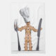 Koch-Box-Charakter mit großem Koch, der große Messer und Gabel auf weißem Hintergrund hält. Kochkonzept