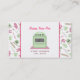 Eine Visitenkarte für den Koch oder Caterer, die eine Abbildung eines Minzgrün-Retroöfens auf der Vorderseite enthält. Hintergrund auf beiden Seiten ist ein kulinarisches Themenmuster. Personalisieren Sie den Text vorne und hinten mit Ihren Kontaktinformationen.