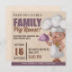 Suchen Sie nicht mehr nach Ihrer Familientrost-Einladung mit dieser niedlichen Abbildung eines Schweinepitchers, der eine außerordentliche Luft trägt, einen Hut und eine Schürze aus Koch trägt, einen Holzlöffel in einem Bein hält und eine Uhr in einem anderen Bein hält. Niedlich und perfekt für einen Familiengrill.