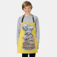 Eine gelb gestreifte, kleine, individuell gestaltete Schürze für Jungen oder Mädchen mit Word-Koch und Kuchen