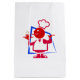 Der Koch ist ein Koch, der eine Suppe in der Hand hat und mit Freude begrüßt wird