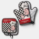 Koch Schwarz-weiß Schachbrett Rote Familienküche Ofenhandschuh & Topflappen-Set