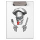 Schädelhut, Koch, der die Zunge heraushält, einen Koch trägt und ein Messer und eine Gabel hält.