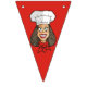 Koch Kopf mit Hut, rotes Halsbein und individueller Text.
