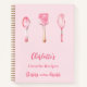 Wählen Sie Ihre Seite Interieur Stil! Ein feminin rosa Hintergrund mit Küchenutensilien. Personalisieren Sie Ihren Namen und einen Text und fügen Sie ihn hinzu.