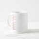 Diese handliche Tasse ist der Freund eines großen Kochers mit bereites Bezugsdiagrammen für allgemeine Maße und metrische Umwandlungsäquivalente. Macht auch eine große Geschenkidee für jene hartnäckigen Bäcker und Köche!