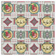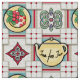Diese maßgeschneiderte, maßgeschneiderte Textilie erinnert an die Küche meiner Oma aus den 40er Jahren. Sie ist mit einer Collage aus hellgelben Teeköpfen, Tellern voller Rothirschen und vielem mehr in einem cremefarbenen & bräunlichen Gitter ausgestattet. Erhältlich in Baumwolle, Polyester, Leinen, etc. für die Herstellung von Steppdecken, Vorhängen, Bekleidung, Polsterung, etc.