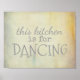 Dieses Küchenplakat hat ein Zitat, das diese Küche für das Tanzen auf Vintagem Stil Aquarell-Design für Wandkunst-Wohngestaltung ist. Ursprüngliche Kunst Urheberrecht Ann Powell alle Rechte vorbehalten