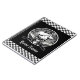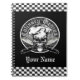 Ein cooler Kochsschädel, der seinen Kochshut, umkreist vor schmuddeliger Ziegelsteinwand trägt. Gekreuzte rauchende Kochsmesser ersetzen traditionelle gekreuzte Knochen. Betiteltes "kulinarisches Genie," dieses Produkt war für den HauptKoch, sous Koch, Linie Koch, Zuhausekoch und irgendwie kulinarisches berufliches mit einer heftigen Leidenschaft für das Kochen bestimmt. Und Schädel.