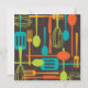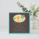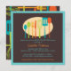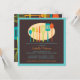 Retro-Stilmittel zum Kochen und Essen sind auf dieser schönen Einladung zu einem "Stock die Küche"-Brautparty für die Braut zu sein. Die Farbgestaltung ist angenehm und fröhlich in den Farbtönen aquamarin, orange und grün, das Set vor einem dunklen Schokoladenboden. Das moderne Design wird eine moderne Braut begeistern.