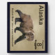 Eine weitere in der Serie der Porto-Briefmarke für eine hypothetische unabhängige Nation von Alaska. Ein digitales Gemälde eines Kodiak Bären auf einem neutralen Pergament, oder altes Papier, Hintergrund. Es erscheint auch das Textlesen "Alaska", "Postage 8 Nuggets" und "Kodiak Bear Ursus arctos middendorffi". Der Kodiak-Bär (Ursus arctos middendorffi), eine Unterart des Braunen oder Grizzly, ist der größte Bär der Welt. Ein vollgewachsenes Männchen kann über 1,50 m hoch sein, wenn es aufrecht auf seinen Hinterbeinen steht und über 1500 Pfund wiegt - ein wahrer Anblick. Ein Bär im Bismarck, der Zoo von Nord-Dakota, hat schätzungsweise bis zu 2400 Pfund gewogen. Die Bären leben auf den Inseln des Kodiak-Archipels von Alaska. Heute gibt es ca. 3500 Kodiak-Bären und ihre Anzahl steigt aufgrund der im Allgemeinen ausgezeichneten Lebensbedingungen, inklusive ausreichend Faust zum Essen. Sie werden in Alutiiq "takuka-aq" genannt, der Sprache der Einwohner dieser Gegend. Man glaubt, dass die Bären dort seit gegen Ende der letzten Eiszeit vor über 12.000 Jahren abgeschieden waren. Obwohl sie die größten terrestrischen Fleischfresser sind, umfasst ihre Ernährung große Mengen von Gras, anderen Pflanze und Beeren. Heute gibt es etwa 3500 Kodiakbären, deren Anzahl aufgrund des allgemein ausgezeichneten Zustands ihres Lebensraums, einschließlich ausreichender Fische zum Essen, zunimmt. Aufgrund des Überflusses an Nahrungsmitteln haben Kodiak-Bären kleinere Zuhause-Reichweiten als alle anderen Braunbären und brauchen keine Gebiete zu verteidigen. Die Alutiiq jagen Bären für Nahrung, Kleidung und Werkzeuge. Pfeile, Speere und viel Mut waren notwendig für die Jagd. Bärenköpfe wurden in der Regel auf dem Feld als Zeichen des Respekts vor dem Geist der Bären links.