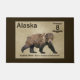 Eine weitere in der Serie der Porto-Briefmarke für eine hypothetische unabhängige Nation von Alaska. Ein digitales Gemälde eines Kodiak Bären auf einem neutralen Pergament, oder altes Papier, Hintergrund. Es erscheint auch das Textlesen "Alaska", "Postage 8 Nuggets" und "Kodiak Bear Ursus arctos middendorffi". Der Kodiak-Bär (Ursus arctos middendorffi), eine Unterart des Braunen oder Grizzly, ist der größte Bär der Welt. Ein vollgewachsenes Männchen kann über 1,50 m hoch sein, wenn es aufrecht auf seinen Hinterbeinen steht und über 1500 Pfund wiegt - ein wahrer Anblick. Ein Bär im Bismarck, der Zoo von Nord-Dakota, hat schätzungsweise bis zu 2400 Pfund gewogen. Die Bären leben auf den Inseln des Kodiak-Archipels von Alaska. Heute gibt es ca. 3500 Kodiak-Bären und ihre Anzahl steigt aufgrund der im Allgemeinen ausgezeichneten Lebensbedingungen, inklusive ausreichend Faust zum Essen. Sie werden in Alutiiq "takuka-aq" genannt, der Sprache der Einwohner dieser Gegend. Man glaubt, dass die Bären dort seit gegen Ende der letzten Eiszeit vor über 12.000 Jahren abgeschieden waren. Obwohl sie die größten terrestrischen Fleischfresser sind, umfasst ihre Ernährung große Mengen von Gras, anderen Pflanze und Beeren. Heute gibt es etwa 3500 Kodiakbären, deren Anzahl aufgrund des allgemein ausgezeichneten Zustands ihres Lebensraums, einschließlich ausreichender Fische zum Essen, zunimmt. Aufgrund des Überflusses an Nahrungsmitteln haben Kodiak-Bären kleinere Zuhause-Reichweiten als alle anderen Braunbären und brauchen keine Gebiete zu verteidigen. Die Alutiiq jagen Bären für Nahrung, Kleidung und Werkzeuge. Pfeile, Speere und viel Mut waren notwendig für die Jagd. Bärenköpfe wurden in der Regel auf dem Feld als Zeichen des Respekts vor dem Geist der Bären links.