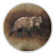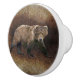 Ein digitales Gemälde eines Kodiak Bären überlagert auf Karibusfell. Der Kodiak-Bär (Ursus arctos middendorffi), eine Unterart des Braunen oder Grizzly, ist der größte Bär der Welt. Ein vollgewachsenes Männchen kann über 1,50 m hoch sein, wenn es aufrecht auf seinen Hinterbeinen steht und über 1500 Pfund wiegt - ein wahrer Anblick. Ein Bär im Bismarck, der Zoo von Nord-Dakota, hat schätzungsweise bis zu 2400 Pfund gewogen. Die Bären leben auf den Inseln des Kodiak-Archipels von Alaska. Heute gibt es ca. 3500 Kodiak-Bären und ihre Anzahl steigt aufgrund der im Allgemeinen ausgezeichneten Lebensbedingungen, inklusive ausreichend Faust zum Essen. Sie werden in Alutiiq "takuka-aq" genannt, der Sprache der Einwohner dieser Gegend. Man glaubt, dass die Bären dort seit gegen Ende der letzten Eiszeit vor über 12.000 Jahren abgeschieden waren. Obwohl sie die größten terrestrischen Fleischfresser sind, umfasst ihre Ernährung große Mengen von Gras, anderen Pflanze und Beeren. Heute gibt es etwa 3500 Kodiakbären, deren Anzahl aufgrund des allgemein ausgezeichneten Zustands ihres Lebensraums, einschließlich ausreichender Fische zum Essen, zunimmt. Aufgrund des Überflusses an Nahrungsmitteln haben Kodiak-Bären kleinere Zuhause-Reichweiten als alle anderen Braunbären und brauchen keine Gebiete zu verteidigen. Die Alutiiq jagen Bären für Nahrung, Kleidung und Werkzeuge. Pfeile, Speere und viel Mut waren notwendig für die Jagd. Bärenköpfe wurden in der Regel auf dem Feld als Zeichen des Respekts vor dem Geist der Bären links.