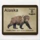 Eine weitere in der Serie der Porto-Briefmarke für eine hypothetische unabhängige Nation von Alaska. Ein digitales Gemälde eines Kodiak Bären auf einem neutralen Pergament, oder altes Papier, Hintergrund. Es erscheint auch das Textlesen "Alaska", "Postage 8 Nuggets" und "Kodiak Bear Ursus arctos middendorffi". Der Kodiak-Bär (Ursus arctos middendorffi), eine Unterart des Braunen oder Grizzly, ist der größte Bär der Welt. Ein vollgewachsenes Männchen kann über 1,50 m hoch sein, wenn es aufrecht auf seinen Hinterbeinen steht und über 1500 Pfund wiegt - ein wahrer Anblick. Ein Bär im Bismarck, der Zoo von Nord-Dakota, hat schätzungsweise bis zu 2400 Pfund gewogen. Die Bären leben auf den Inseln des Kodiak-Archipels von Alaska. Heute gibt es ca. 3500 Kodiak-Bären und ihre Anzahl steigt aufgrund der im Allgemeinen ausgezeichneten Lebensbedingungen, inklusive ausreichend Faust zum Essen. Sie werden in Alutiiq "takuka-aq" genannt, der Sprache der Einwohner dieser Gegend. Man glaubt, dass die Bären dort seit gegen Ende der letzten Eiszeit vor über 12.000 Jahren abgeschieden waren. Obwohl sie die größten terrestrischen Fleischfresser sind, umfasst ihre Ernährung große Mengen von Gras, anderen Pflanze und Beeren. Heute gibt es etwa 3500 Kodiakbären, deren Anzahl aufgrund des allgemein ausgezeichneten Zustands ihres Lebensraums, einschließlich ausreichender Fische zum Essen, zunimmt. Aufgrund des Überflusses an Nahrungsmitteln haben Kodiak-Bären kleinere Zuhause-Reichweiten als alle anderen Braunbären und brauchen keine Gebiete zu verteidigen. Die Alutiiq jagen Bären für Nahrung, Kleidung und Werkzeuge. Pfeile, Speere und viel Mut waren notwendig für die Jagd. Bärenköpfe wurden in der Regel auf dem Feld als Zeichen des Respekts vor dem Geist der Bären links.
