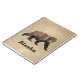 Ein digitales Gemälde eines Kodiak Bären auf einem neutralen Pergament, oder altes Papier, Hintergrund. Es erscheint auch das Textlesen "Alaska". Der Kodiak-Bär (Ursus arctos middendorffi), eine Unterart des Braunen oder Grizzly, ist der größte Bär der Welt. Ein vollgewachsenes Männchen kann über 1,50 m hoch sein, wenn es aufrecht auf seinen Hinterbeinen steht und über 1500 Pfund wiegt - ein wahrer Anblick. Ein Bär im Bismarck, der Zoo von Nord-Dakota, hat schätzungsweise bis zu 2400 Pfund gewogen. Die Bären leben auf den Inseln des Kodiak-Archipels von Alaska. Heute gibt es ca. 3500 Kodiak-Bären und ihre Anzahl steigt aufgrund der im Allgemeinen ausgezeichneten Lebensbedingungen, inklusive ausreichend Faust zum Essen. Sie werden in Alutiiq "takuka-aq" genannt, der Sprache der Einwohner dieser Gegend. Man glaubt, dass die Bären dort seit gegen Ende der letzten Eiszeit vor über 12.000 Jahren abgeschieden waren. Obwohl sie die größten terrestrischen Fleischfresser sind, umfasst ihre Ernährung große Mengen von Gras, anderen Pflanze und Beeren. Heute gibt es etwa 3500 Kodiakbären, deren Anzahl aufgrund des allgemein ausgezeichneten Zustands ihres Lebensraums, einschließlich ausreichender Fische zum Essen, zunimmt. Aufgrund des Überflusses an Nahrungsmitteln haben Kodiak-Bären kleinere Zuhause-Reichweiten als alle anderen Braunbären und brauchen keine Gebiete zu verteidigen. Die Alutiiq jagen Bären für Nahrung, Kleidung und Werkzeuge. Pfeile, Speere und viel Mut waren notwendig für die Jagd. Bärenköpfe wurden in der Regel auf dem Feld als Zeichen des Respekts vor dem Geist der Bären links.