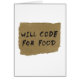 Kodierer auf der Suche nach Arbeit… kodiert für Nahrung. Geld ist optional. Groß für Programmierer, Informatiker und Ingenieure auf der Suche nach Anstellung, Nahrung oder gerade einem großen Lachen.