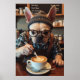 Beginnen Sie Ihren Tag mit einem Lachen - dieses Poster zeigt einen französischen Bulldog in menschlicher Form, der in einem grünen und weißen Flanellglas-Shirt, Aufhängern und dicken Gläsern versteckt ist. Er steckt in der Mitte hinter einer trendigen Kaffeemaschine und zeigt damit den Schwergewicht des Barista-Bar. Sein Ausdruck sagt, dass er bereits drei Aufnahmen von "Bark Roast" hatte. Alberne Chalkboard-Getränke-Namen runden die Szene ab. Eine perfekte Wahl für Küchen, Cafés oder alle, die Hunde, Kaffee und eine unheimliche Wandkunst Lieben.