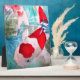Mit einem Design aus einem original Aquarellmalerwerk der australischen Künstlerin Sacha Grossel von zwei Kohaku rot-weiß Koi Zierfische japanische Fische schwimmen in einem coolen, aquamarinischen Teich mit Wassereffekten. Dieses bunte und lebendige Kunstwerk wird von japanischer und asiatischer Kunst inspiriert und ist für Fische oder Koi Liebhaber überall.