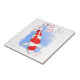 Rotes und weißes koi, bekannt als ein kohaku auf japanisch. Mit Kirschblüten und den japanischen Buchstaben für "kohaku".